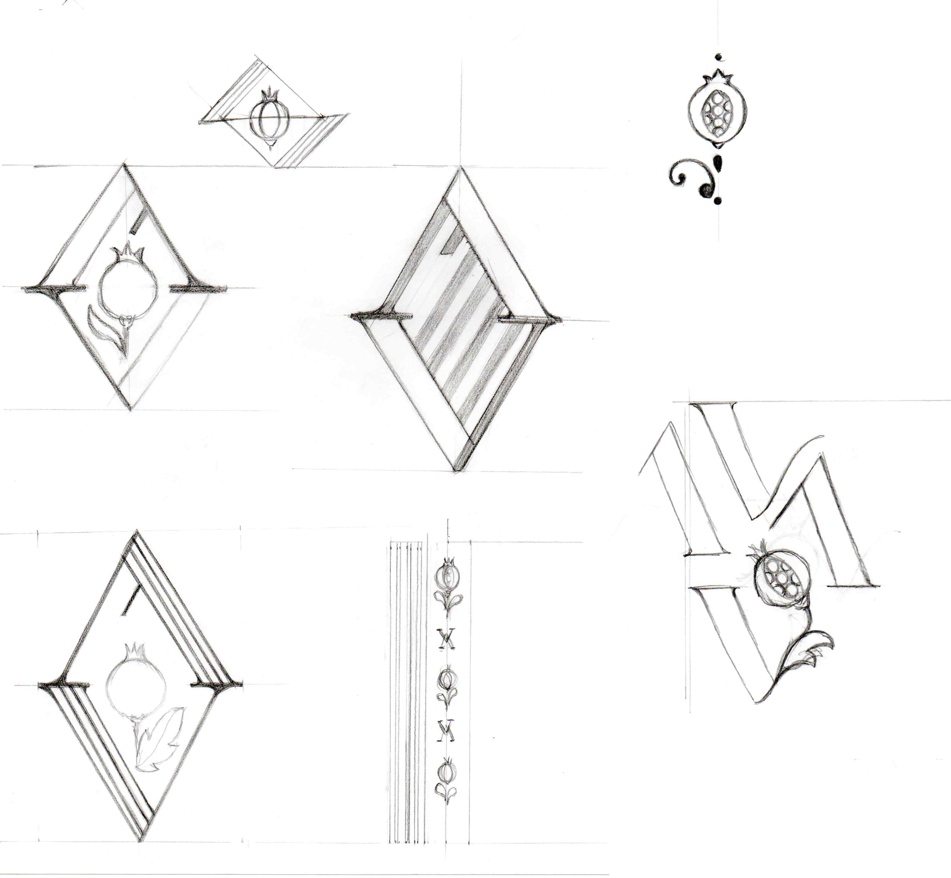 Dessin d’un imprimé all-over à l’aquarelle sur le thème du voyage, recherches pour la création d’un monogramme.